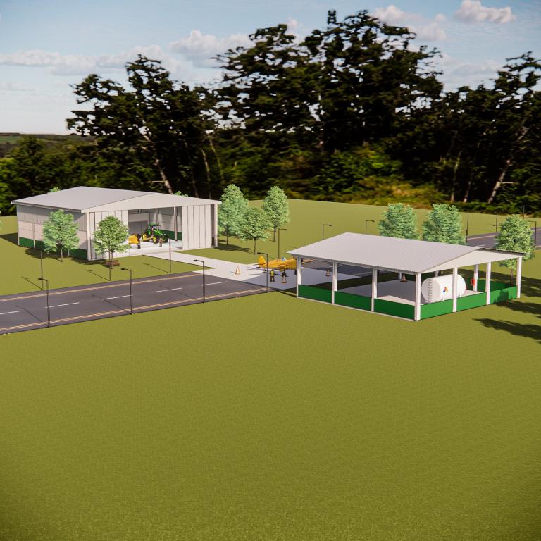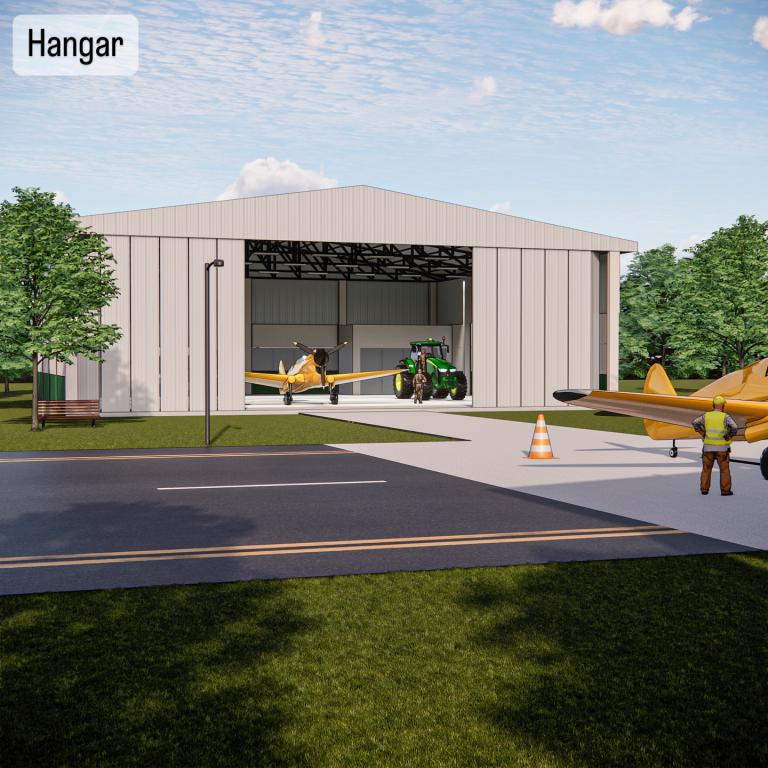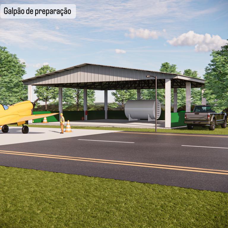 - Hangar para abrigo de Aeronave, Suíte, Área de Serviço e Depósito;